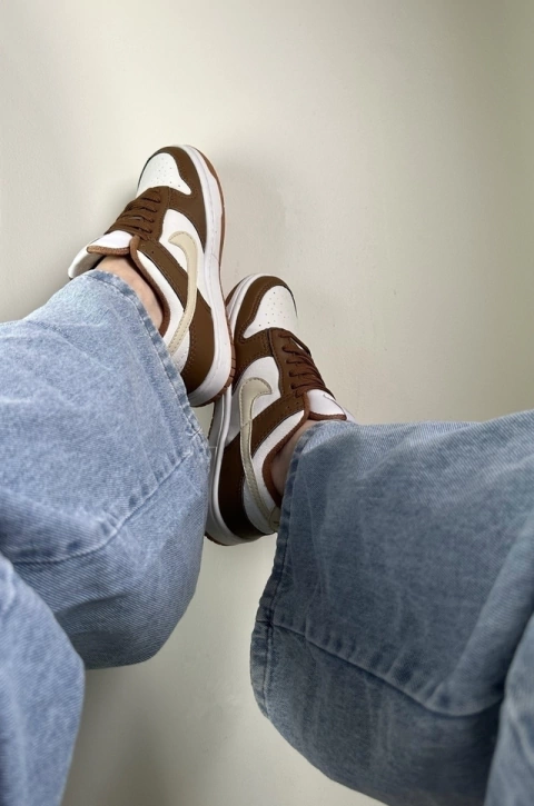 O Nike Dunk Low "Cacao Wow" feminino é um colorway exclusivo para mulheres do tênis de basquete retrô com um visual old school. Chamado de colorway "Cacao Wow" pela Nike, este Dunk Low apresenta uma parte superior branca off-white com sobreposições de couro Cacao Wow, ou marrom, e marca Swoosh. A marca clássica "Nike" é bordada na parte de trás da gola e as marcas "Nike" e Swoosh são encontradas na etiqueta da língua. Sob os pés, a entressola envelhecida do sapato dá à silhueta um visual clássico e vintage.